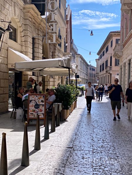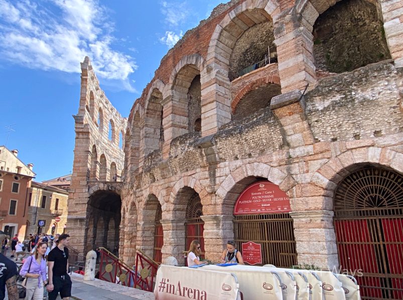 Verona did not disappoint. There was no heavy traffic or high-rise buildings. It was a slow, relaxed pace featuring old world archways and buildings, open-air plazas filled with restaurants, cafes, and shops on one side and views of a first century A.D. stone Roman arena on the other.
